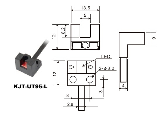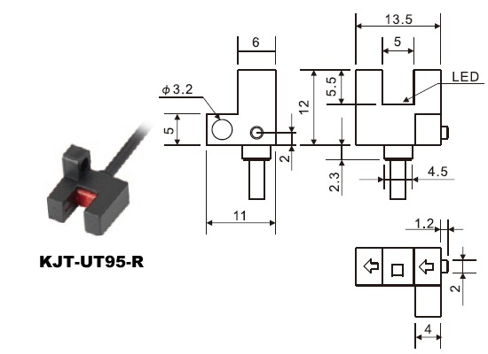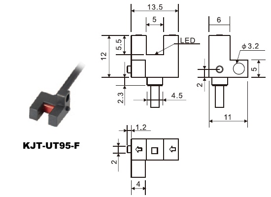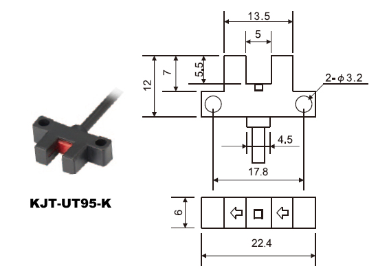 KJT-UT95系列超小型槽型光電開關(guān)|槽型光電開關(guān)產(chǎn)品型號-參數(shù)-接線圖