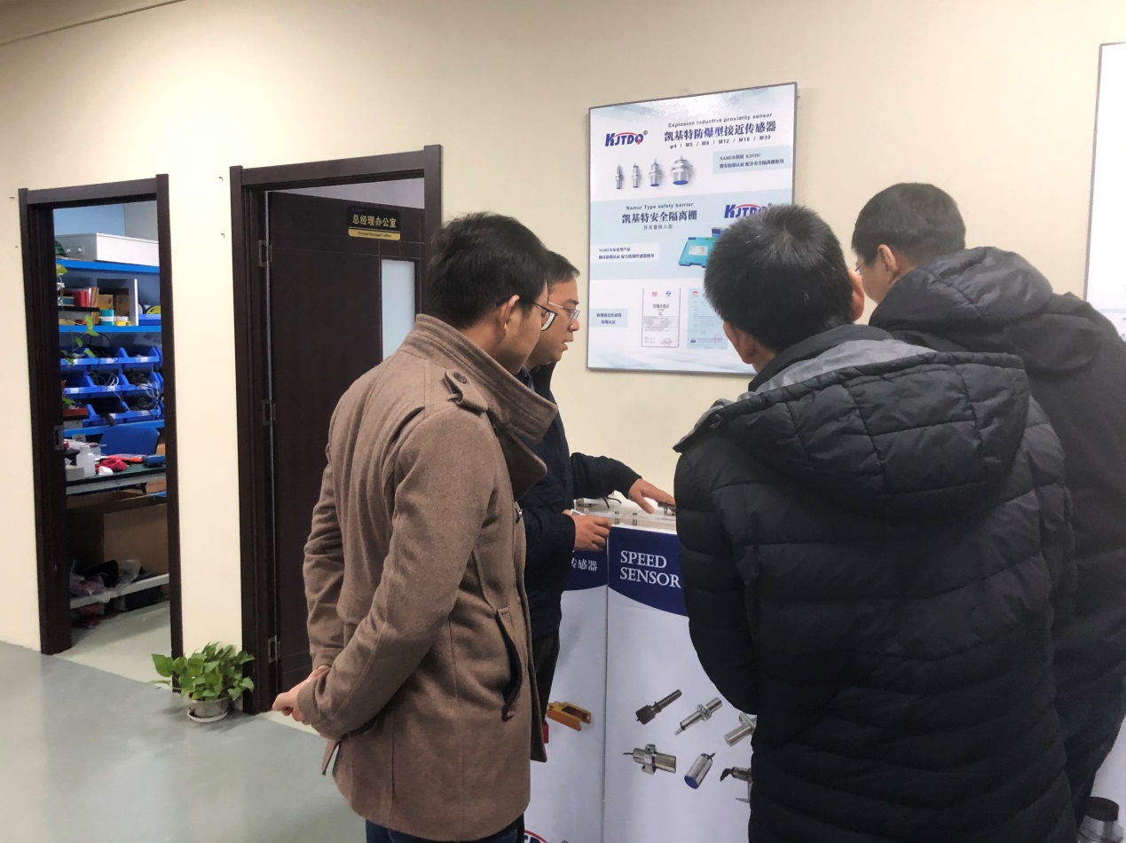 領導一行先后參觀了各個生產車間、研發部,為所有員工帶來親切的慰問,重點參觀了我司產品展廳,張經理向領導們詳細介紹了接近傳感器、光電傳感器、無線傳感器、速度傳感器、壓力傳感器、防爆傳感器、行程限位開關等,領導們對我司產品評價高度贊賞,充分認可我司產品品質,也對我司十多年來的高速發展表示贊嘆!