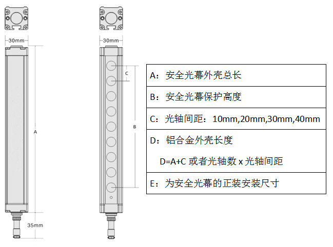 | 保護幅寬 | 光軸間距×(光路數(shù)-1) | ||||