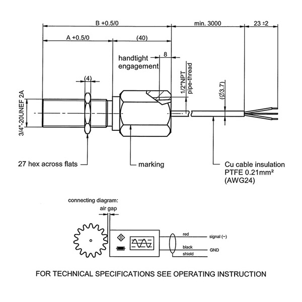 凱基特齒輪轉(zhuǎn)速傳感器核心部件是采用磁敏電阻作為檢測的元件,再經(jīng)過全新的信號處理電路令噪聲降低,功能更完善。通過與其它類型齒轉(zhuǎn)速傳感器的輸出波形對比,所測到轉(zhuǎn)速的誤差極小以及線性特性具有很好的一致性.感應(yīng)對象為磁性材料或?qū)Т挪牧希绱配摗㈣F和電工鋼等。當被測體上帶有凸起(或凹陷)的磁性或?qū)Т挪牧希S著被測物體轉(zhuǎn)動時,傳感器輸出與旋轉(zhuǎn)頻率相關(guān)的脈沖信號,達到測速或位移檢測的發(fā)訊目的。