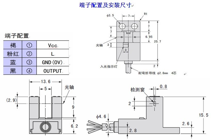 - 檢測距離:5mm(凹槽寬度)